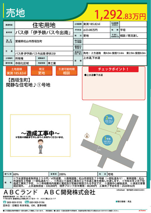 さて西垣生に2区画の分譲地、現在造成工事進めております。